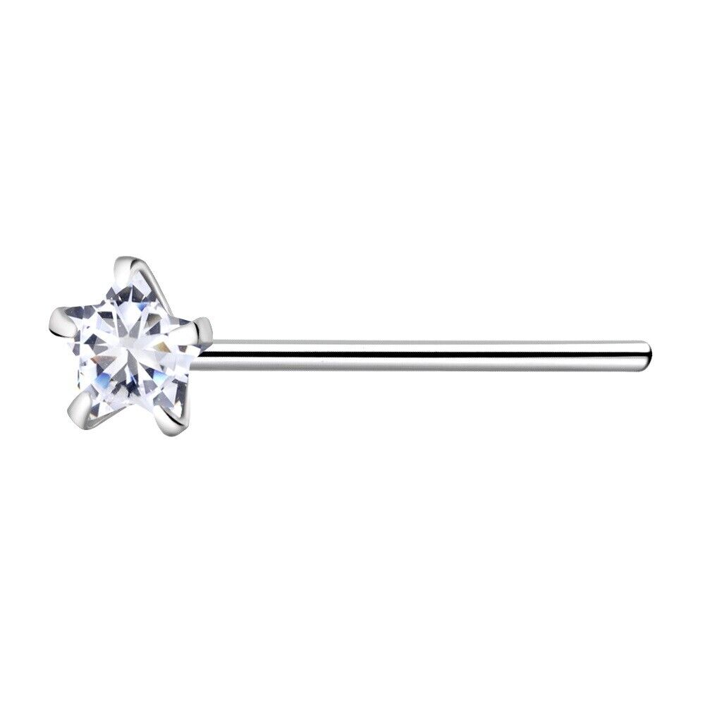 925 Sterling Silver Nose Stud 3mm Clear CZ Star straight pin bend to fit ring UK