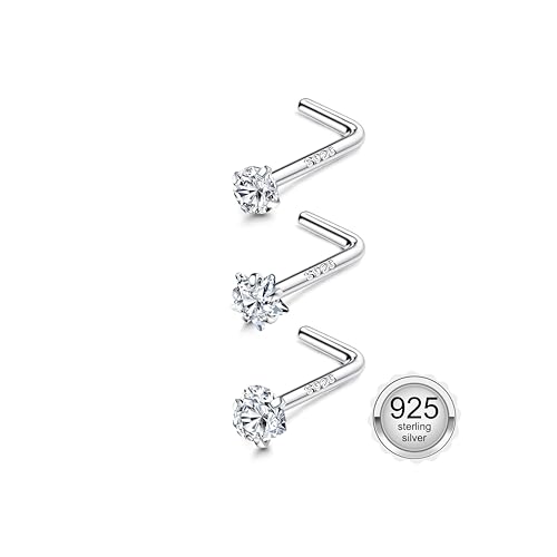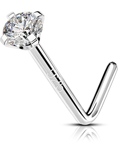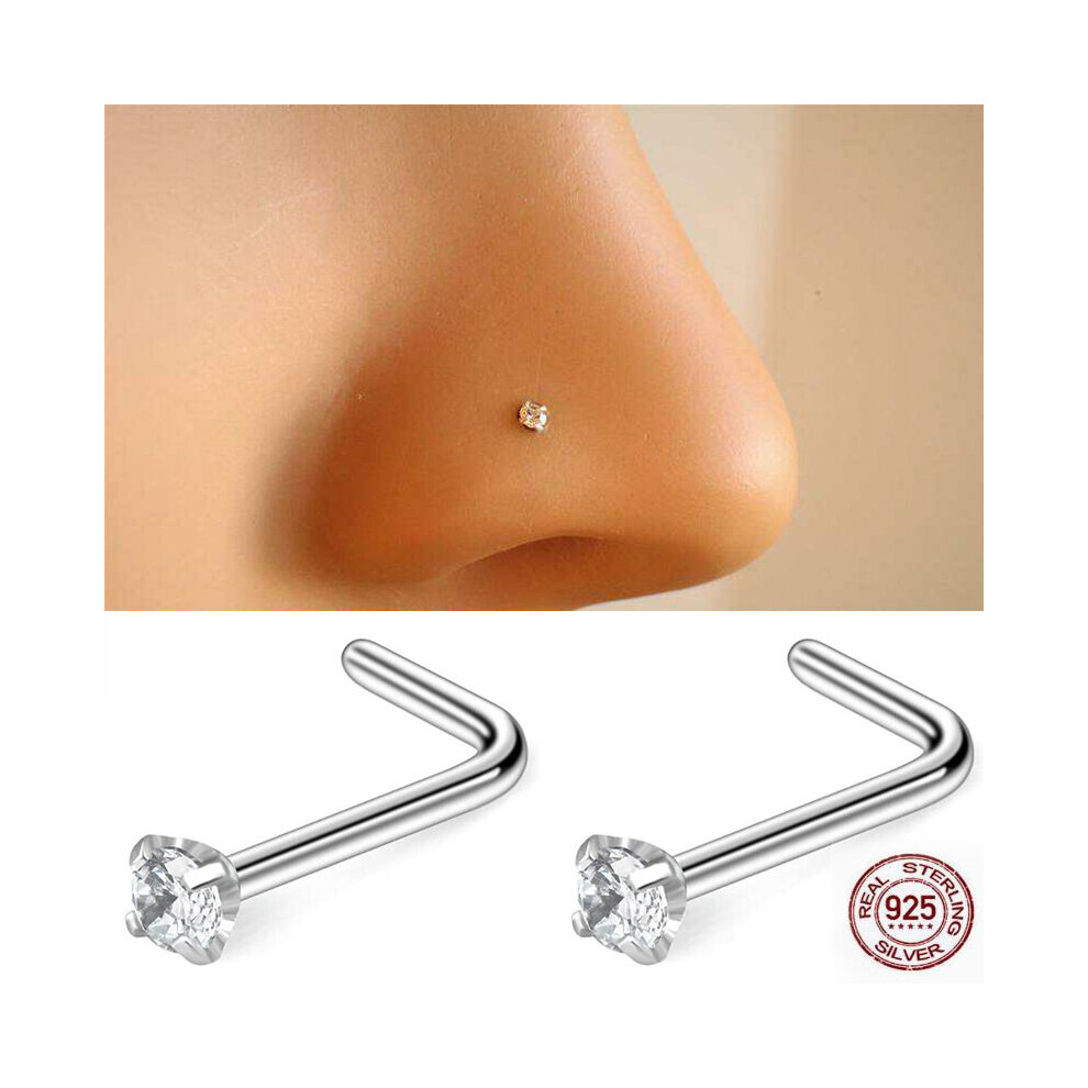 OUFER 925 Sterling Silver Nose Stud L Nose Rings Screw 20G Nostril Solid 2mm Round CZ Body Piercings Jewellery Cartilage Earrings for Women Men