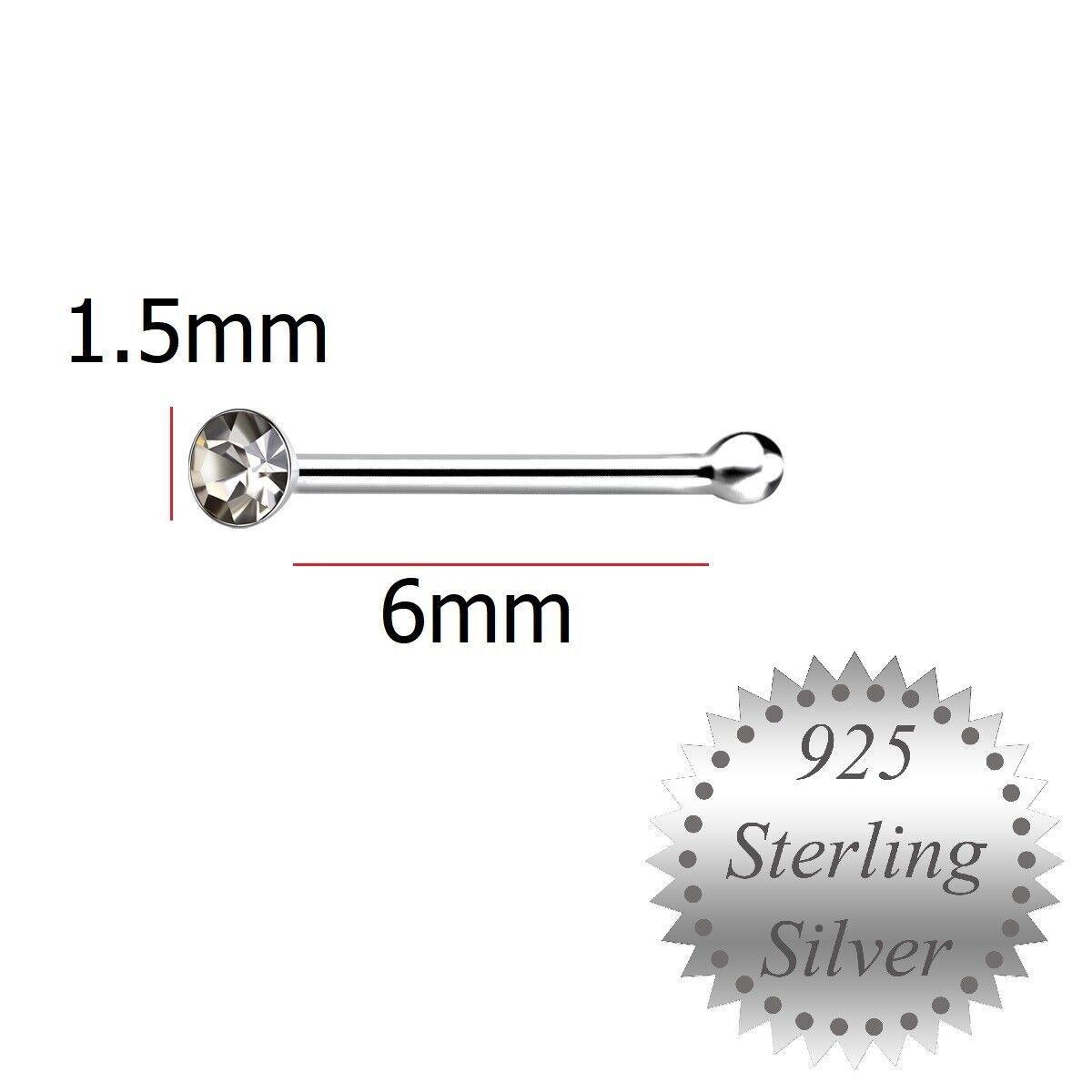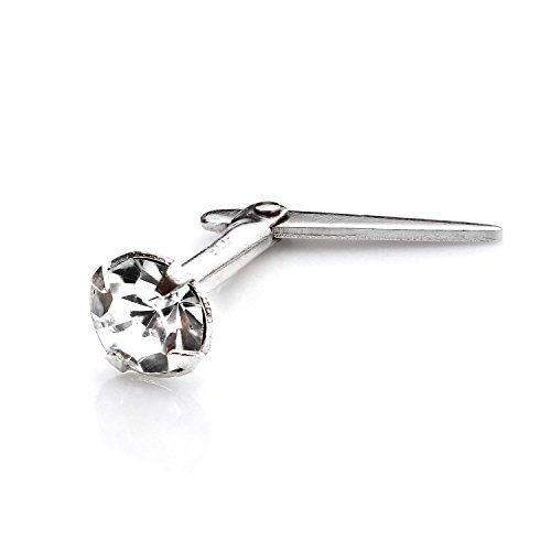 1.5 mm 925 Sterling Silver Clear Crystal Nose Stud Claw Straight Pin Set of 5