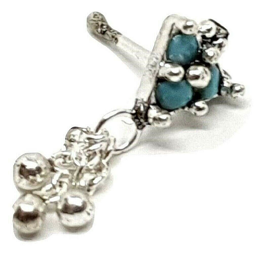 925 Silver Nose Stud Exotic Turquoise Silver 3 Chain Balls 20g (0.8) Ball End Uk