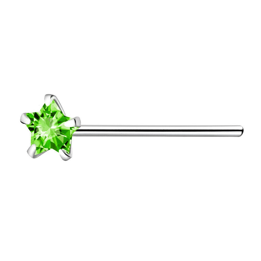 925 Sterling Silver Nose Stud 3mm Peridot Green CZ Star straight pin bend to fit
