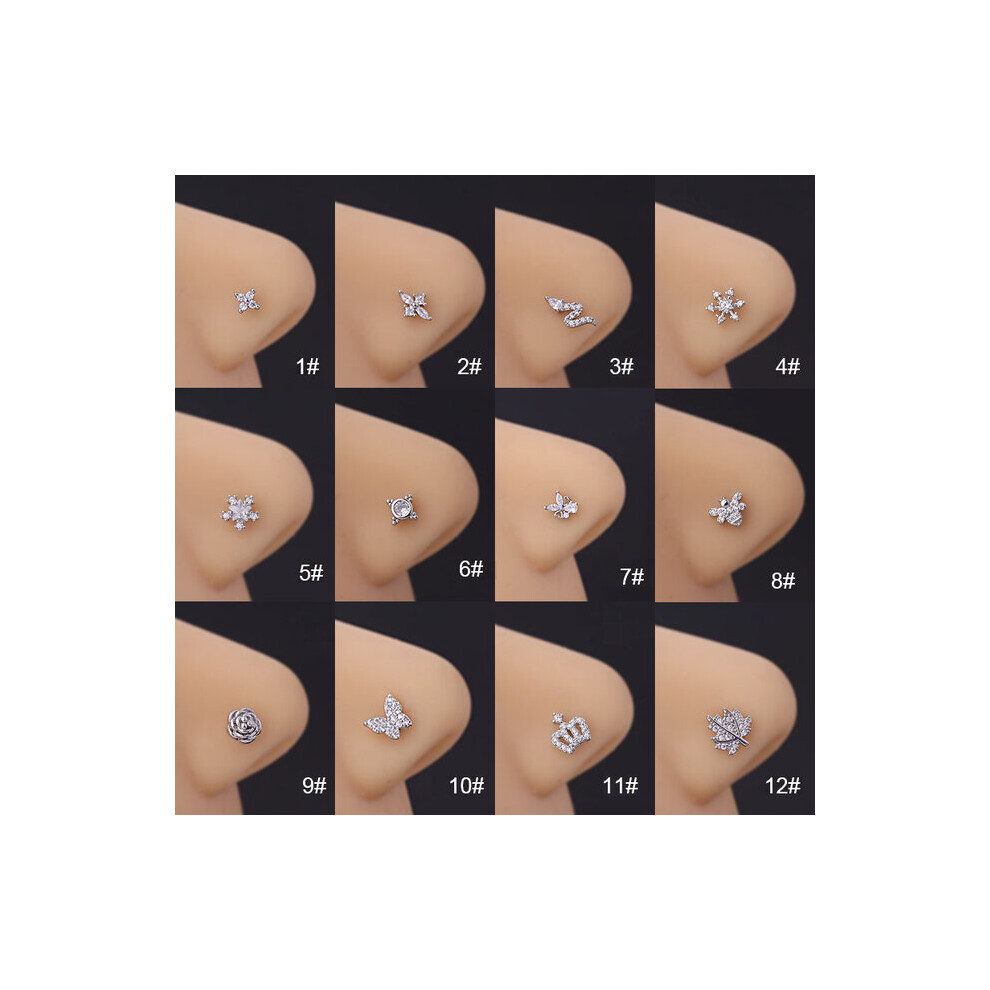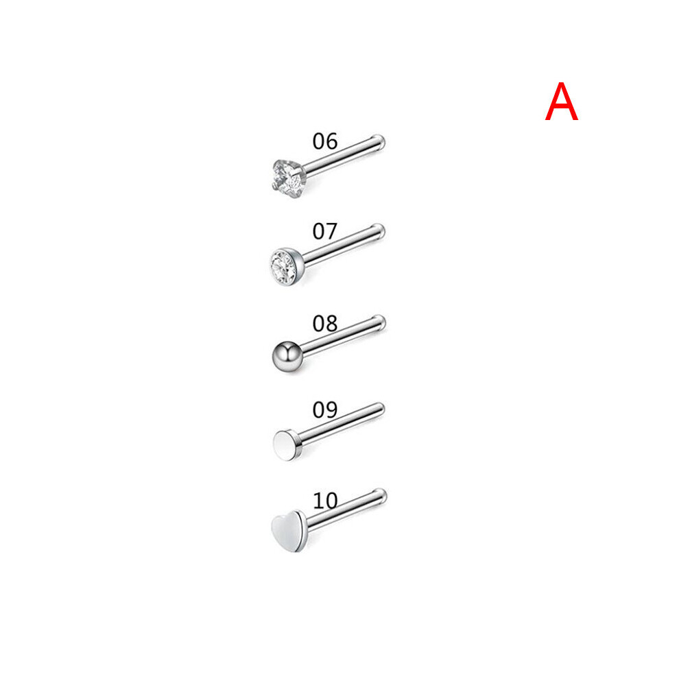 5/9/21Pcs 20G Nose Studs Surgical Steel Nostril Studs Screws Nose Ring Hoop Body Piercing Silver Heart Nose Stud