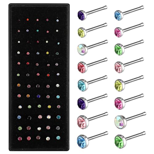 60pcs Nose Stud for Women Straight Nose Studs Silver Surgical Steel Nose Stud Small Nose Piercing Jewellery Small Diamond Tiny Nose Stud Ring 1.5/2.0/2.5mm (Multicolor)