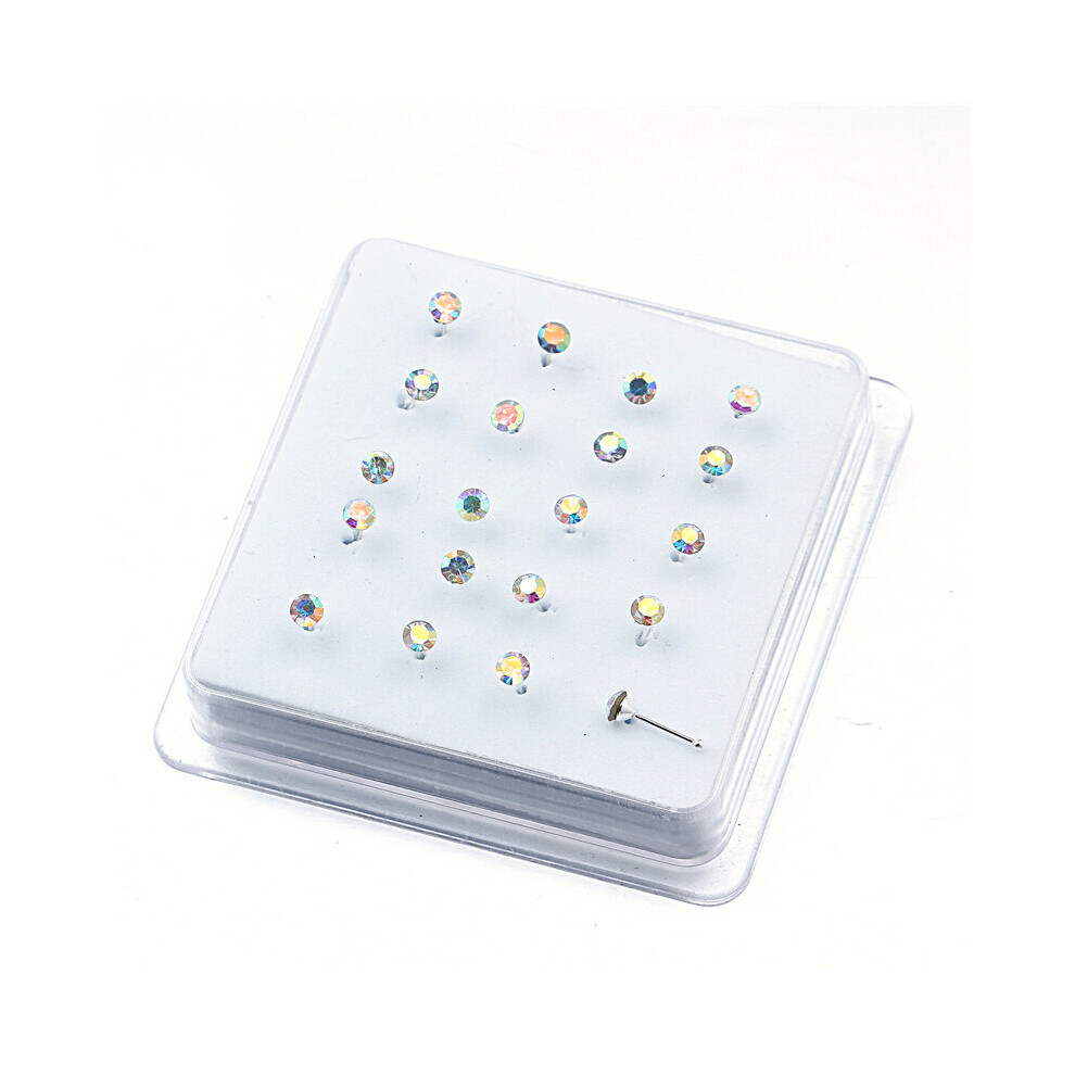 1set 20 Pcs 925 Silver Ball Pin Nose Stud With 3MM Multicolor Crystal Nose Piercing Body Jewelry Round Shape Pin Body Jewelry