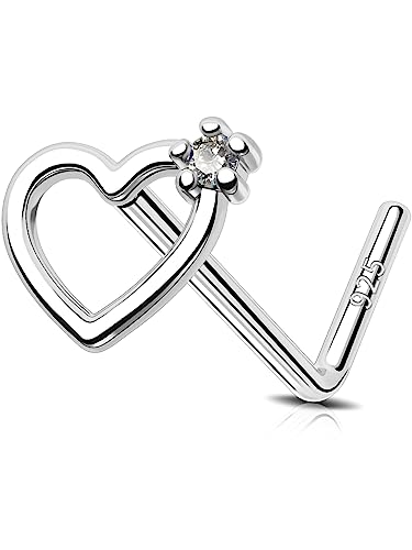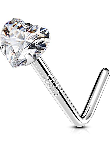 OUFER 925 Sterling Silver Nose Stud L Nose Rings 20G Nostril Solid Heart Star Body Piercings Jewellery Cartilage Earrings for Women Men (L - Heart)