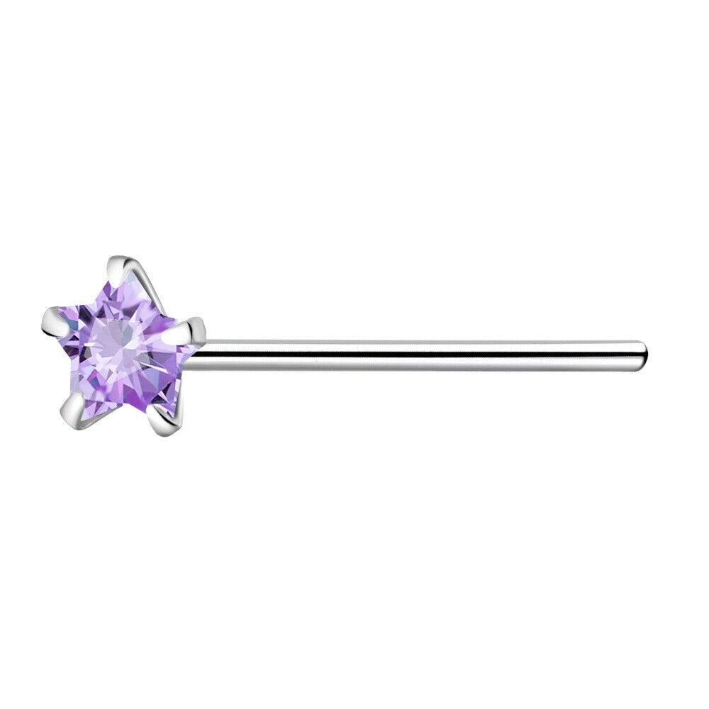925 Sterling Silver Nose Stud 3mm Lavender Purple CZ Star straight bend 2 fit UK