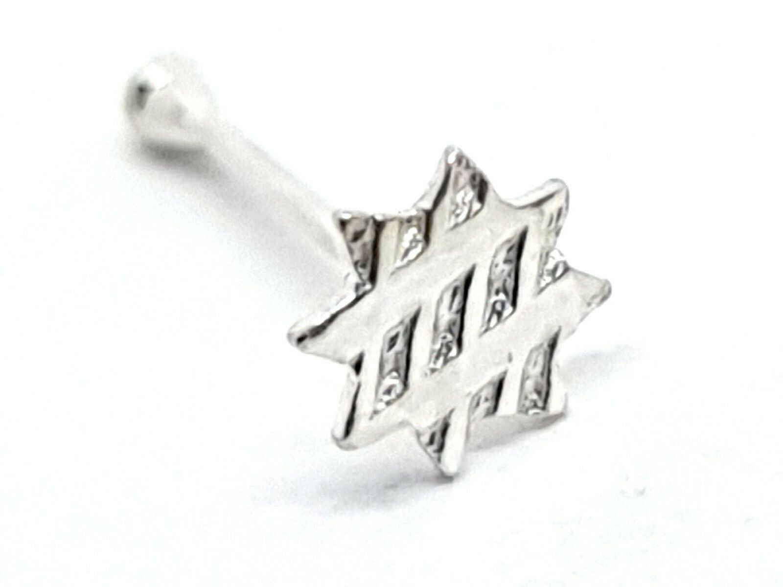 925 Silver Star Nose Stud 8 Pointed Shimmer Star Pattern 22g (0.6mm) Ball End