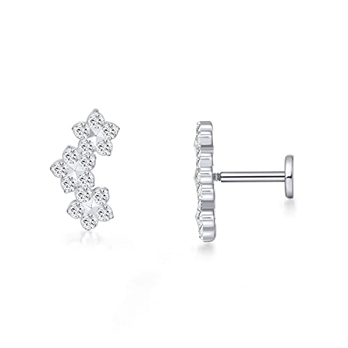 Limerencia 18g Titanium Tragus Piercing Jewelry, 2 Pcs Internally Threaded Labret Lip Bars, Earring Stud for Helix, Nose, Cartilage, Monroe for Women Men(Triple Flowe Silver)