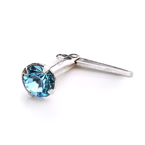1.5mm Light Blue Crystal Sterling Silver Nose Stud short ball end Pin Bone Aqua