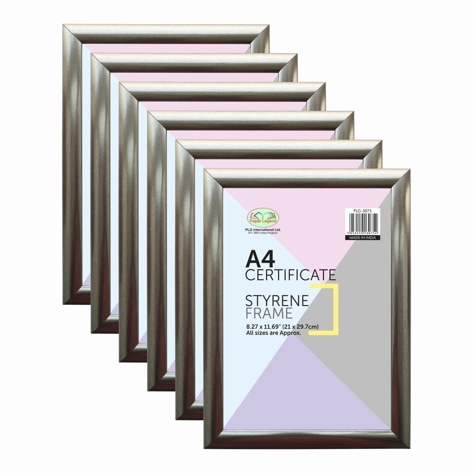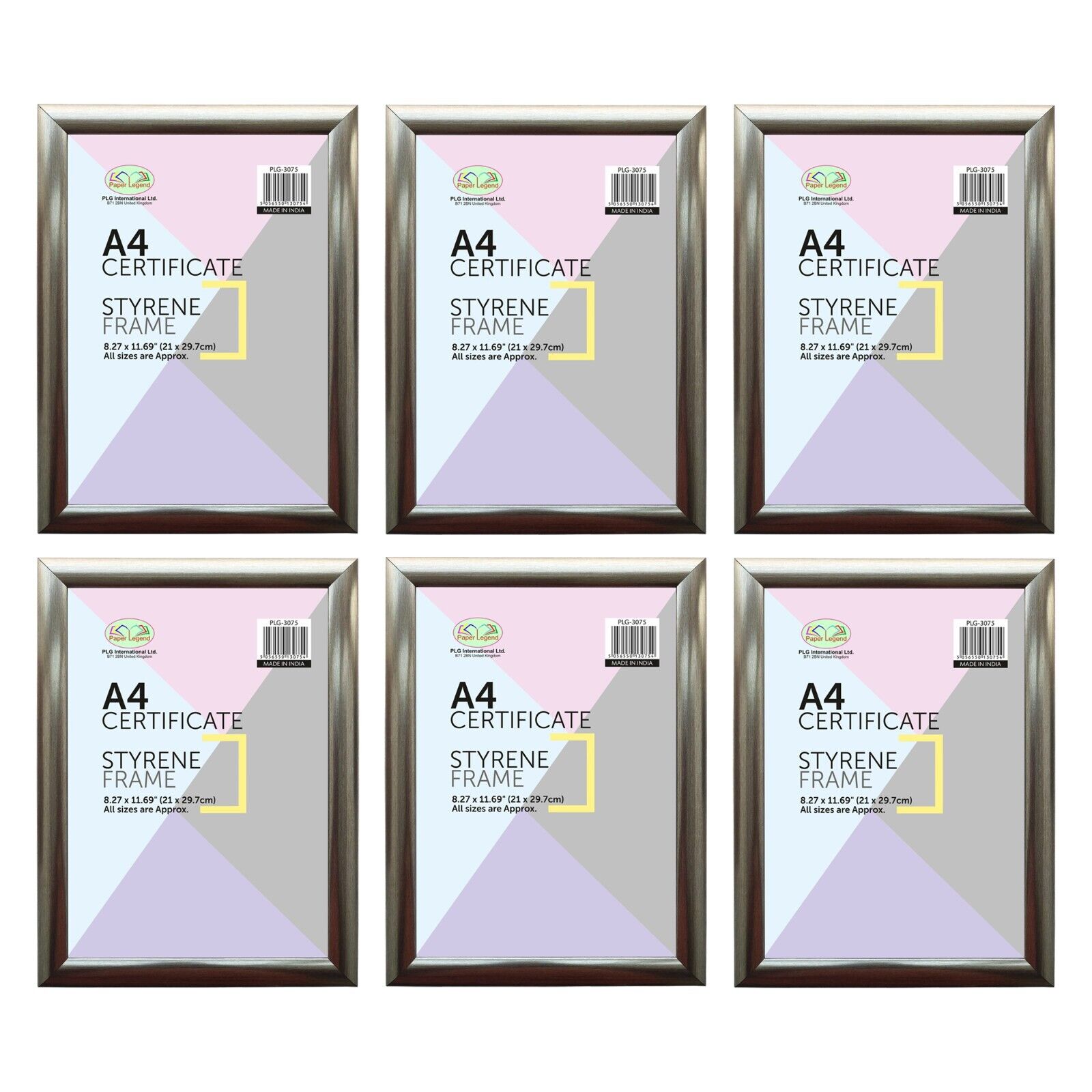 A4 Certificate Silver Photo Frames, Set of 6, Poster Portrait Picture Wall Mount