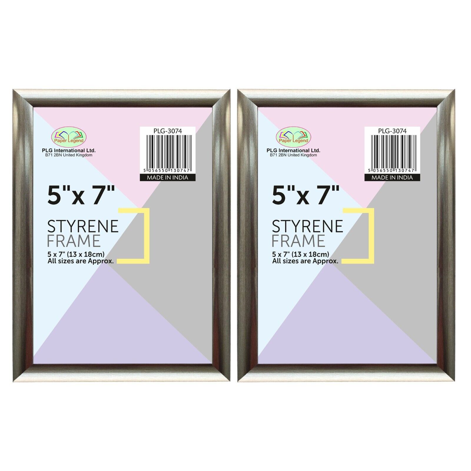 (Pack of 2) 5"x7" Plastic Silver Photo Frames Wall Art Hanging Office Home Decor