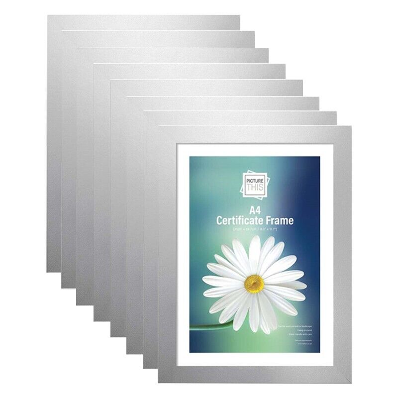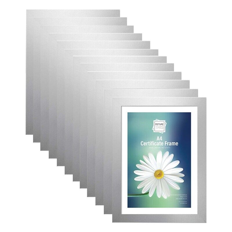 10 x A4 Certificate Silver Photo Picture Frames 8.3"x11.7" (21cm x29.7cm) Decor