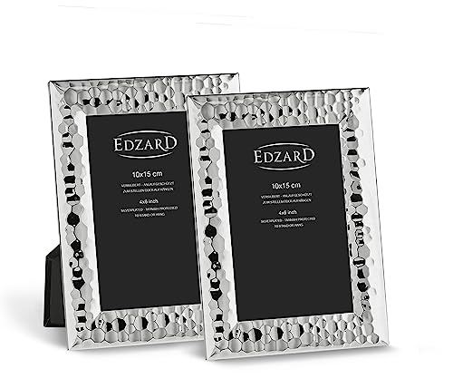 Edzard Set of 2 Silver Plated Photo Frames 4"x6" (10x15 cm) Gubbio, Non-Tarnishing, High Gloss Finish, Real Glass Front & Premium Velvet Back, Portrait or Landscape Display - Elegant Wedding Gift