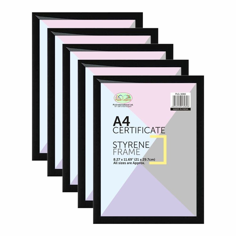 A4 Certificate Silver Photo Frames, Set of 5, Poster Portrait Picture Wall Mount