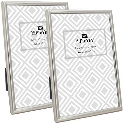 YiPinYin 4x6'' Simply Silver Metal Picture Frame 2pack, Elegant Silver Plated Photo Frames 4 x 6'' With Soft Touch Velvet Backing for Desktop and Wall Décor