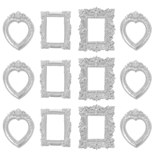 Toyvian 30pcs Mini Vintage Silver Resin Picture Frames for DIY Crafts, Dollhouse Photo Display, Tiny Baroque Style Frames for Home, Party, Mobile Phone Decoration Random Style