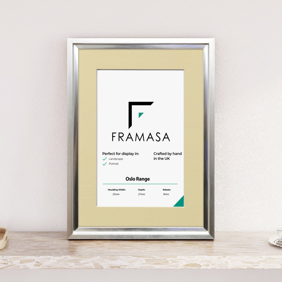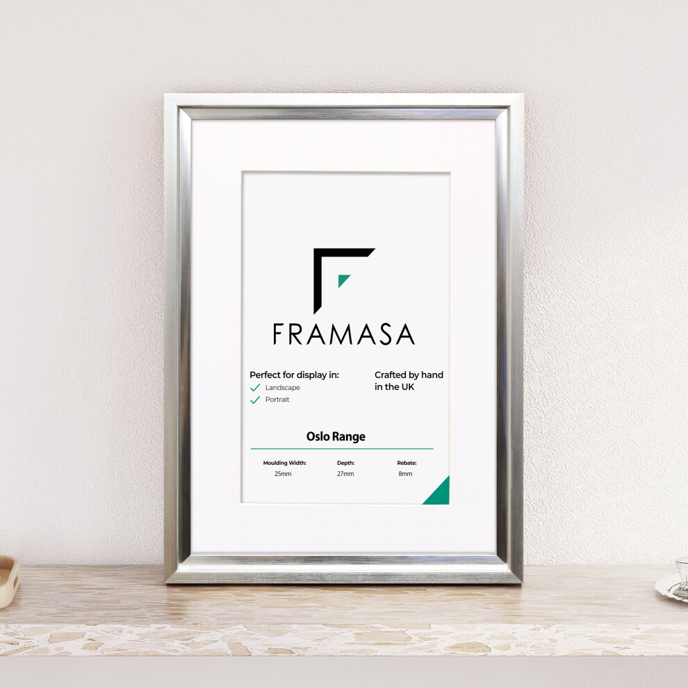 (Silver Frame White Mount, 16x8 Pic (20x12 Frame)) Oslo Shabby Chic Range Silver Picture Frames Art Poster Photo Frames With Multicolored Mounts Whit