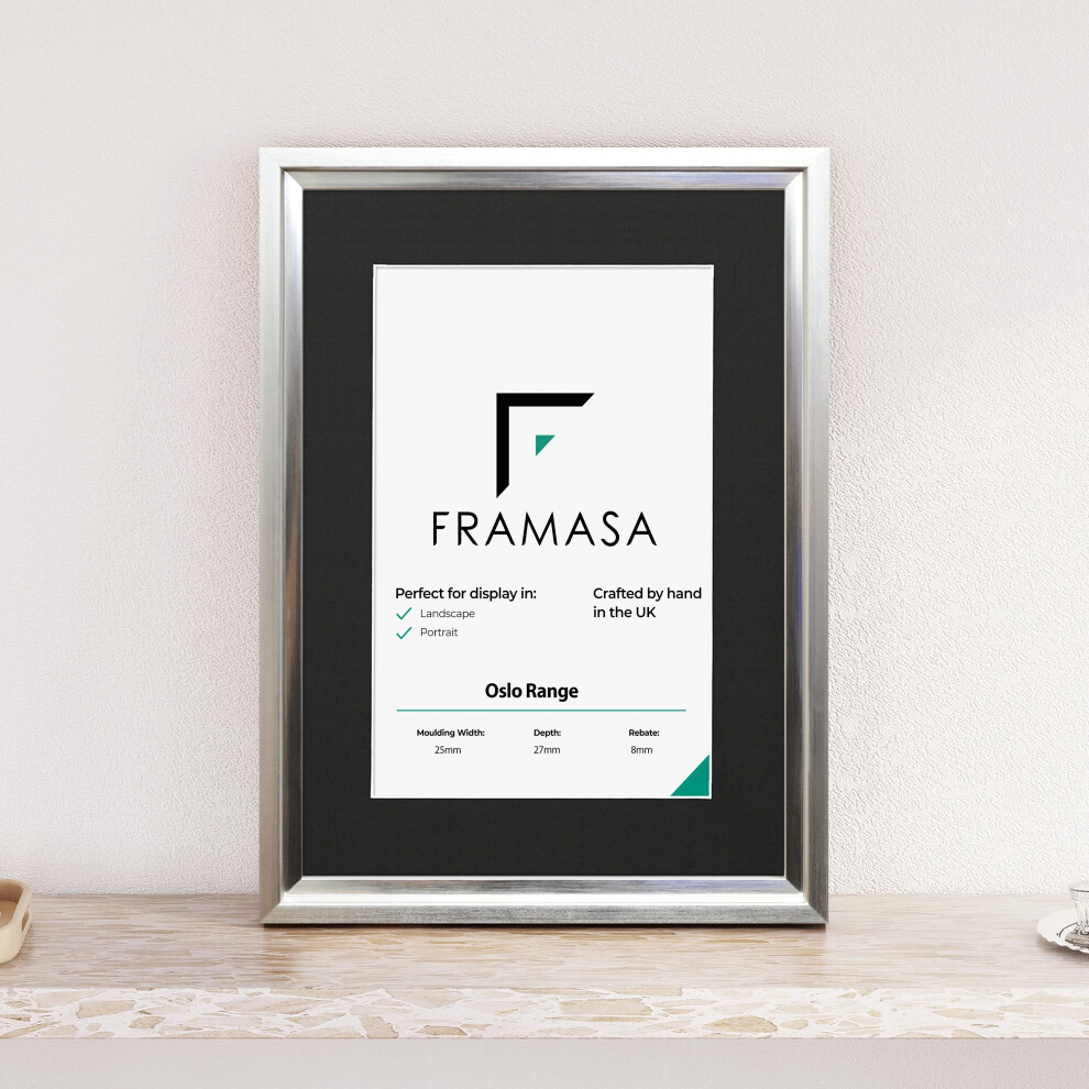 (Silver Frame Black Mount, 16x8 Pic (20x12 Frame)) Oslo Shabby Chic Range Silver Picture Frames Art Poster Photo Frames With Multicolored Mounts Whit