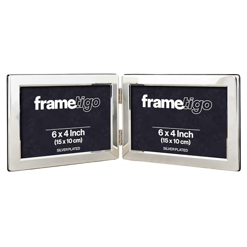 Frametigo - Silver Plated Flat Edge Double Landscape Photo Frame, 6"x4" (15x10cm) Photo Size - Velvet Frame Backing & Stand - Real Glass Window - Traditional Silver Picture Frames - Tarnish Resistant