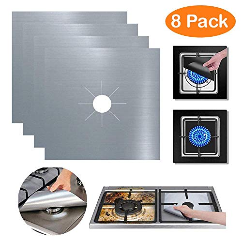 Black or Silver Reusable Gas Stove Protector Heat Resistant Hob Range Burner Protectors Top Cooker Cover Stove Top Non Stick Mats Easy to Clean BPA Free Variety Packs (Pack of 8, Silver)