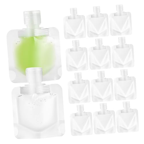 CIYODO 12PCS Small Travel Lotion Storage Bags with Suction Nozzle Pet Material Liquid Dispensers for Shampoo Conditioner Creams Reusable and Leak Resistant Cosmetic Containers