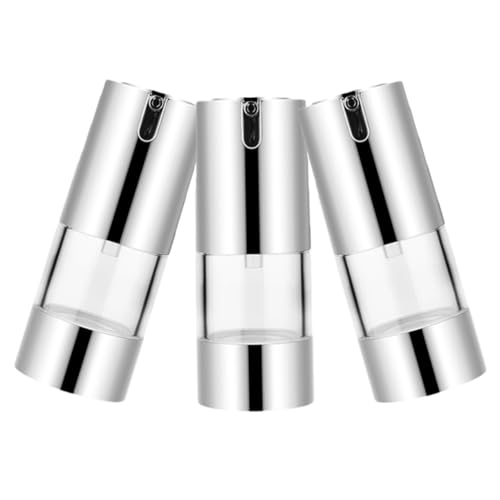 CIYODO 3pcs Airless Pump Dispenser Bottles Silver Cosmetic Lotion Containers with Thickened Anti-Slip Bottom for Travel Face Cream Shampoo Conditioner