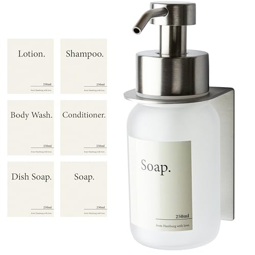 Designfactory Hamburg Glass Soap Dispenser | Wall mounted Soap Dispenser for Kitchen and Bathroom | Shampoo and Conditioner Dispenser | Modern Design Silver Frost