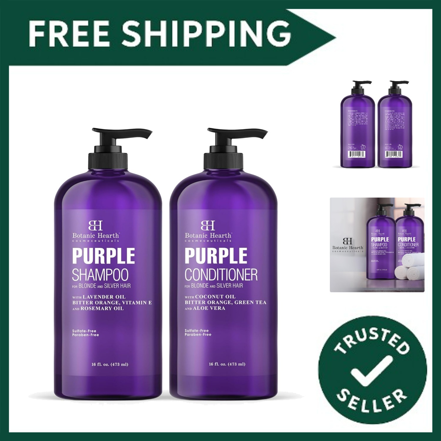 BOTANIC HEARTH Purple Shampoo and Conditioner Set - for All Shades of Blonde, Silver and Gray Hair - Enhances Highlights - Sulfate Free, Paraben Free,