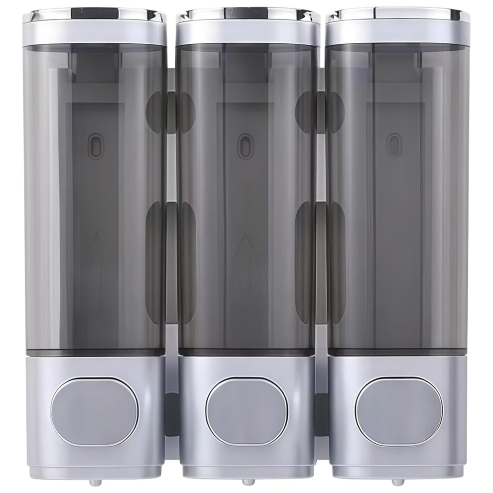 Shampoo and conditioner dispenser, 3 chambers, shower soap, wallmounted, bathroom, large capacity, silver color