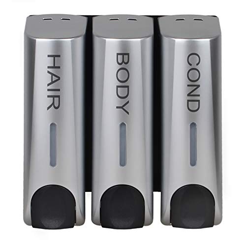 Chamber Soap Dispenser Trio Shower Gel Shampoo Conditioner ABS Plastic Wall Mount Silver