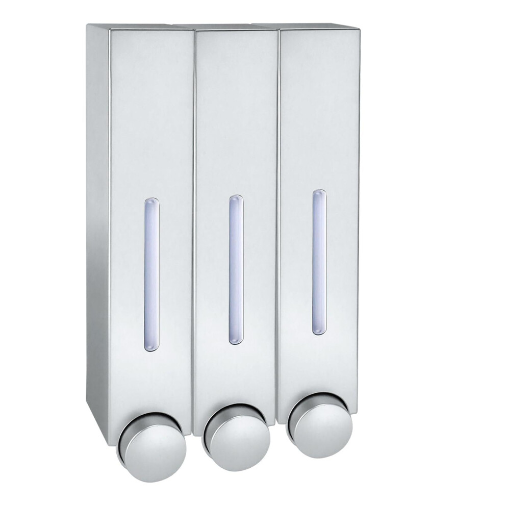 Wall Mounted Soap Dispenser, NoDrill Triple Chamber for Shampoo and Conditioner, Silver Finish