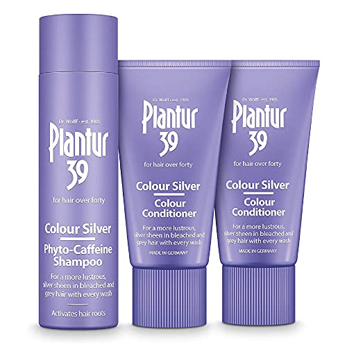 Plantur 39 Purple Shampoo and Conditioner Set | Enhanced Silver Sheen for Bleached and Grey Hair | Prevents and Reduces Hair Loss and Supports Hair Growth | 1x Shampoo 250ml | 2x Conditioner 150ml