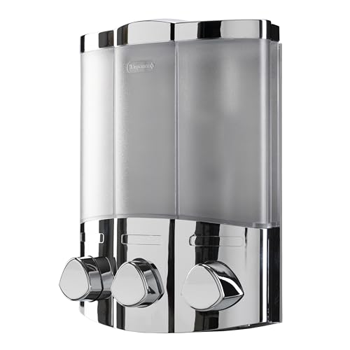 Croydex Wall Mounted Soap Dispenser - Eliminates Shower Clutter, Easy to Refill and Has a Pre-Measured Pump for Your Shower Gel, Shampoo and Conditioner, Mount On Corner or Flat Wall (Chrome, 3x450ml)