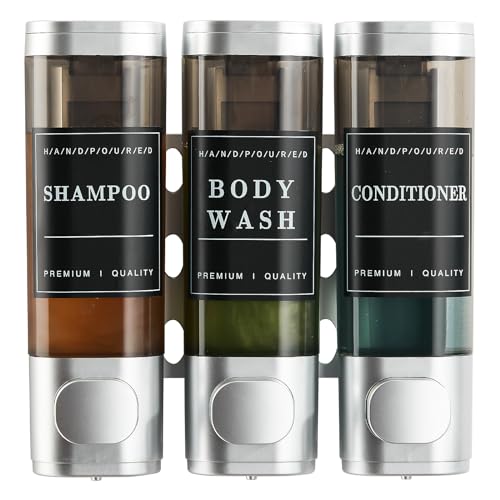 Shampoo and Conditioner Dispenser,Shower Dispenser 3 Chamber No Drill Wall-Mounted Shampoo Dispenser for Shower Wall Mounted Body Wash Dispenser for Bathroom Hotel Kitchen Large Capacity,Silver