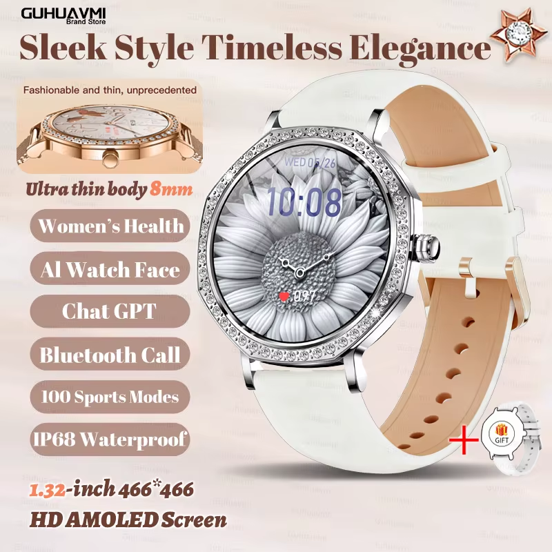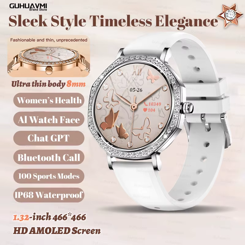 2025 New Ladies' Fashion Smartwatch Diamond Frame HD AMOLED Screen Bluetooth Cal
