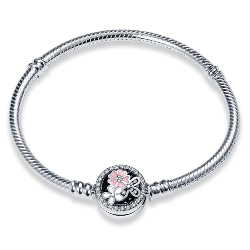 LNQOBU 925 Sterling Silver Snake Chain Bracelet,Butterfly Bracelets,Heart Shape Bracelet Clasp for Womes Jewellery Gift