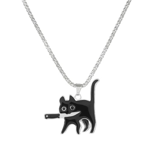 Niaspi Black Cat Pendant Necklaces Killer Hold a Knife Kitty Animal Silver Snake Chain Necklace Unique Funny Halloween Jewelry Gifts for Pet Lover