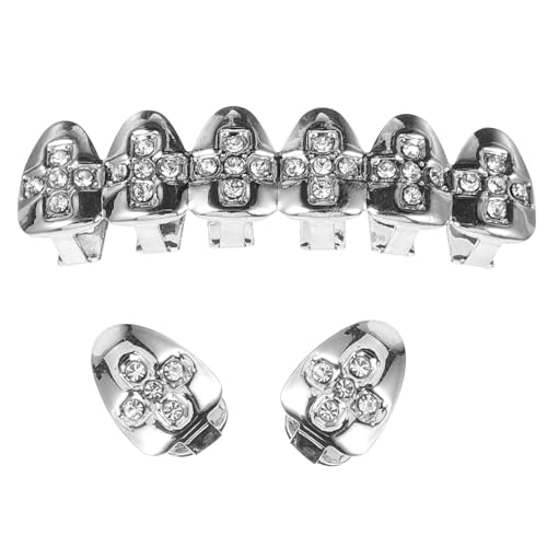 HEALLILY Teeth Grills Set Silver Plated Teeth Grillz Rhinestone Teeth Hip Hop Caps Lower and Upper Tooth Teeth Brace