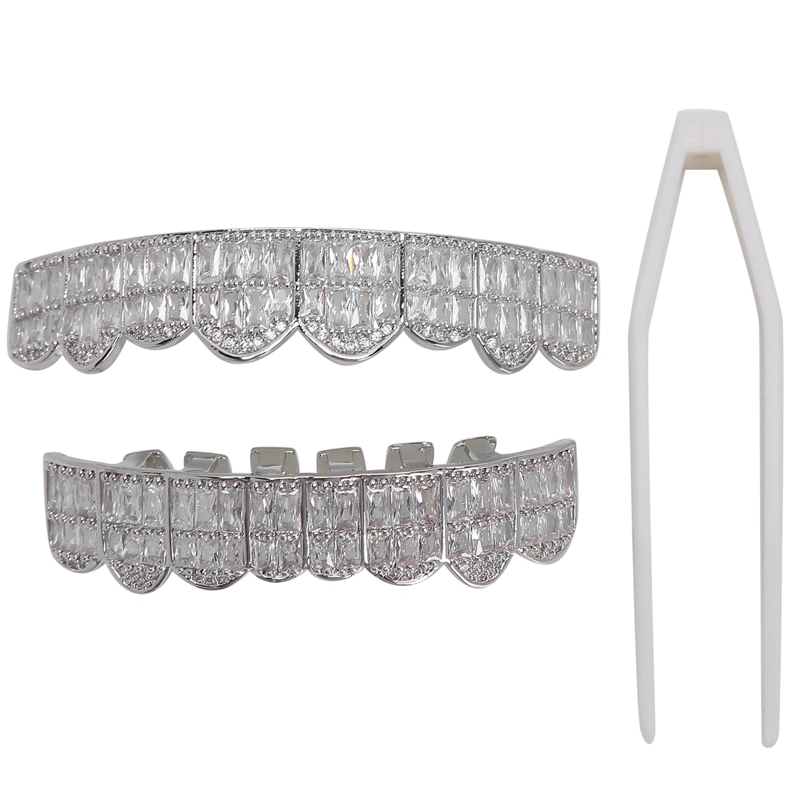 Silver Teeth Set Hip Hop Teeth Grills Iced Out Teeth Decoration For Men Women