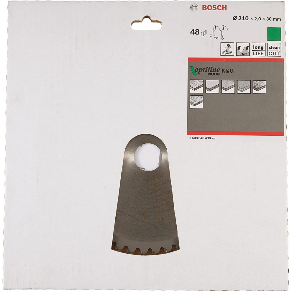 Bosch 2608640430 Optilineline Mitre Circular Saw Blade for Wood, 210mm x 2.0mm x 30mm, 48 Teeth, Silver