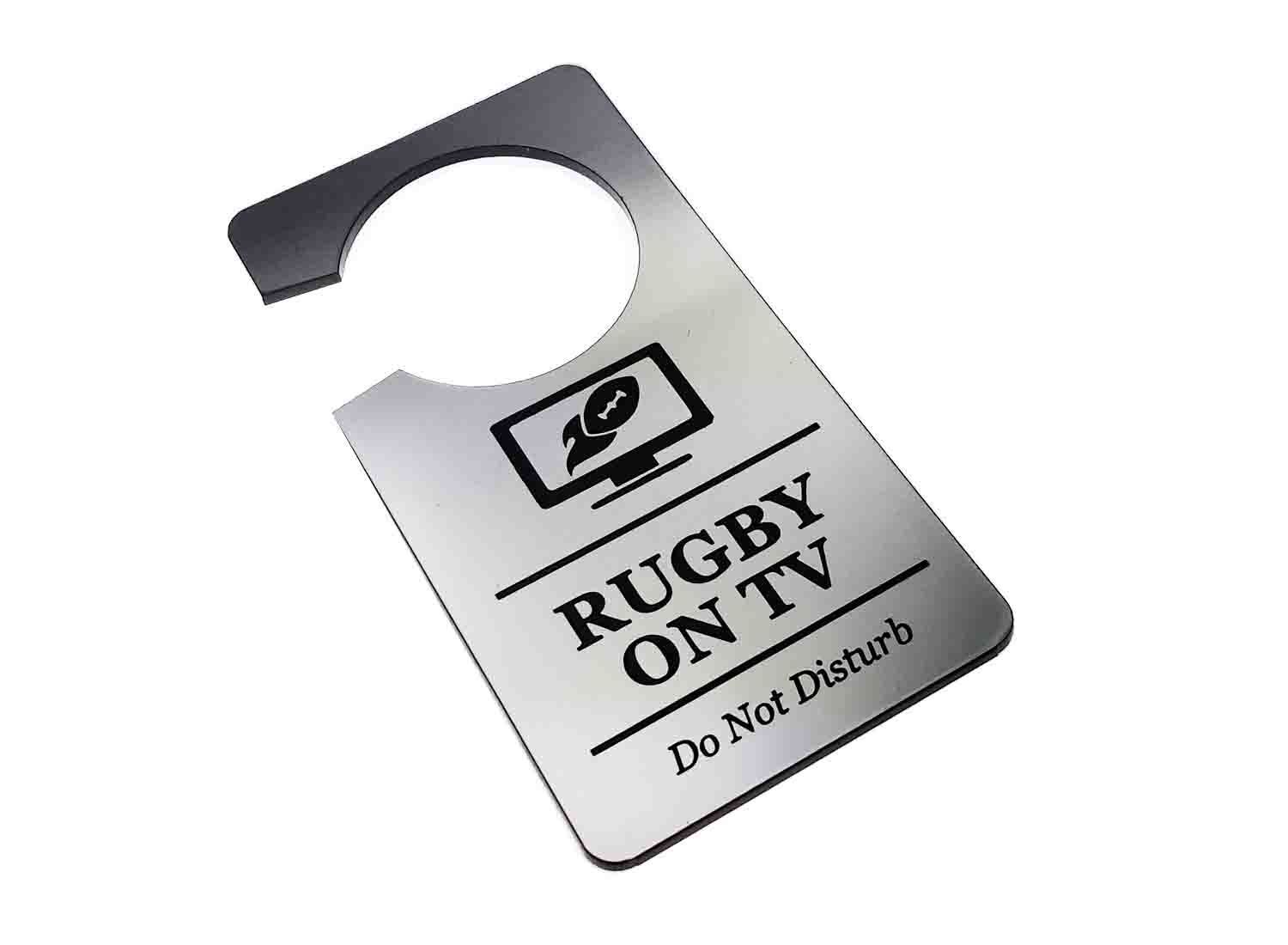 Watching Rugby on TV Television, Do Not Disturb - Generic Silver, Room Door Sign