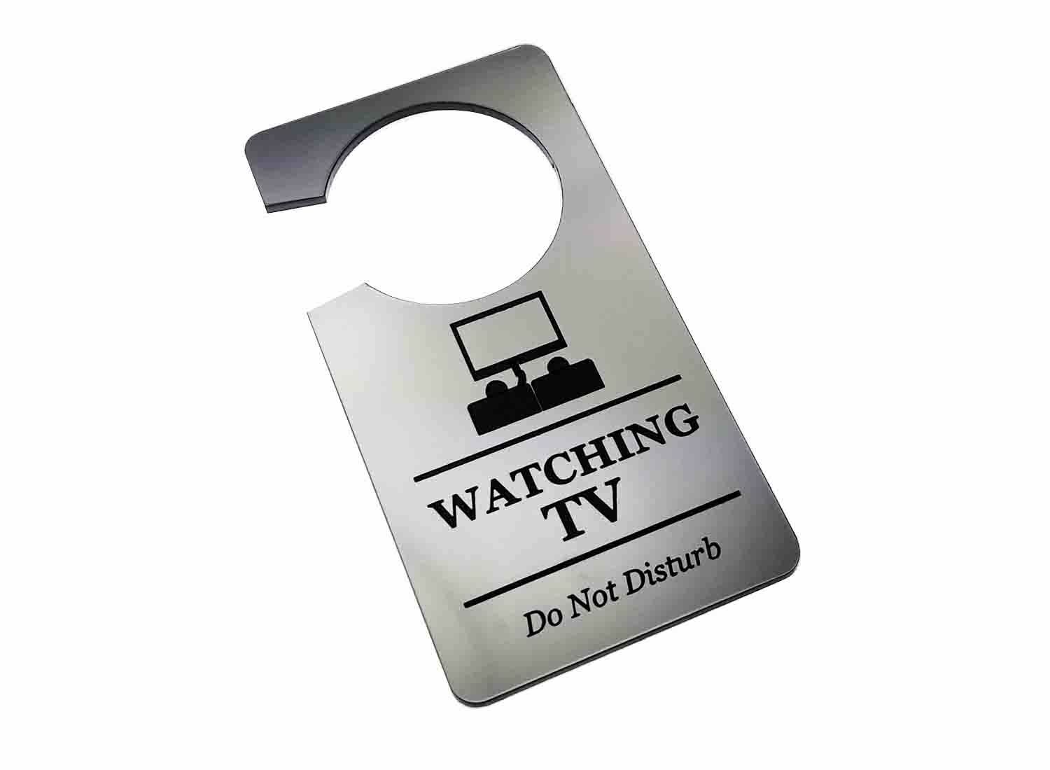 Watching TV Television, Do Not Disturb - Generic Silver, Room Door Sign Hanger