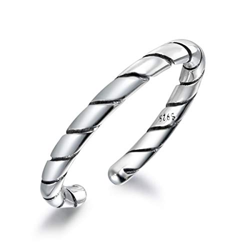 Solid 925 Sterling Silver Ring for Women, Adjustable Vintage Silver Thumb Ring, Unisex Resizable Infinity Open Finger Rings Toe Rings for Women M