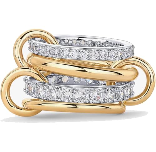 Gold Silver Stackable Rings for Women Multi Link Connected Rings Chunky Interlocking Eternity Statement Ring cz Connected Band Thumb Non Tarnish Ring (A-Silver, R)