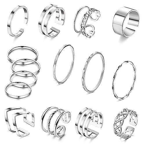 VilaGi 12Pcs Toe Rings for Women, Adjustable Toe Rings Set for Women Silver Plated T/oe R/ings Open Stackable Rings Simple Thumb Ring Knuckle Rings Joint Ring for Beach,Foot Jewelry for Girls