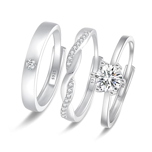 MUCCA 3pcs Sterling Silver Rings Set for Women Adjustable Cubic Zirconia Stackable Rings 925 Silver Thumb Ring Jewellery Gift Idea