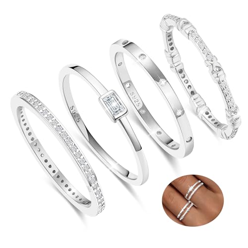 MUCCA 4 Pcs Sterling Silver Ring Set for Women - 925 Sterling Silver Cubic Zirconia Thumb Rings for Stacking and Exquisite Jewellery Gifts