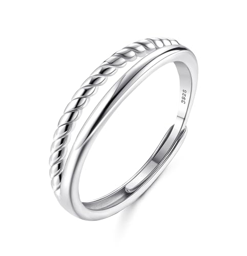 Adramata 925 Sterling Silver Ring for Women Adjustable Thumb Rings Stacking Twist Band Ring Promise Ring Eternity Wedding Ring Engagement Rings Rose Gold Silver Gold Rings for Women Girls