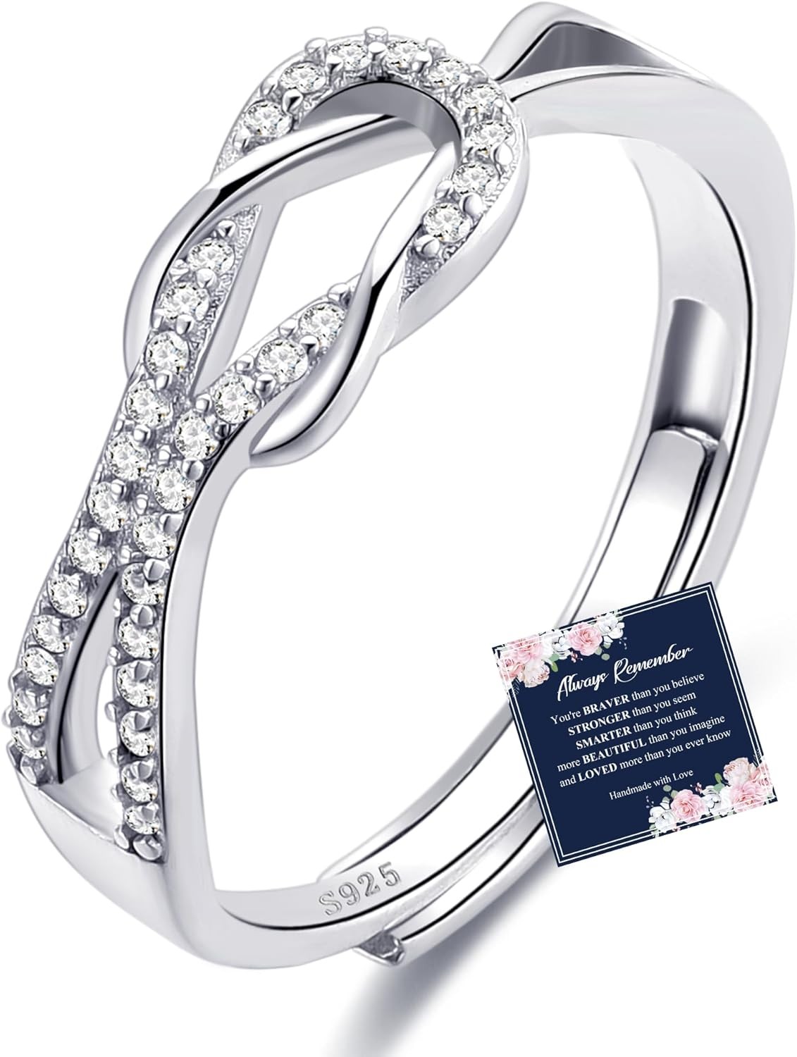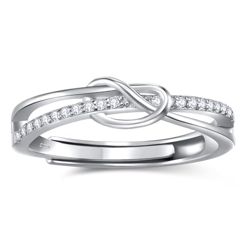 Adramata 925 Sterling Silver Ring for Women Girls Adjustable Infinity Cross Bow Knot Rings Engagement Rings Promise Ring Eternity Wedding Ring Silver Thumb Rings for Women, Womens Jewellery Gifts
