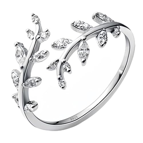 Sterling Silver Rings for Women Adjustable Open Ring Stress Relief Anxiety Thumb Rings Wrap Around Leaves Rhinestones Promise Ring Jewellery Gift for Girlfriend Anniversary (Leaf, Silver-Leaf)